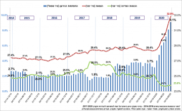 התפתחות הגירעון, ההוצאות וההכנסות כאחוז מהתמ"ג