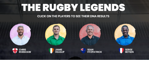 חברת הסטרטאפ הישראלית MyHeritage המתמחה בחקר שורשים וגנטיקה, ערכה בדיקה גנטית של כוכבי הרוגבי העולמיים, בהם כריס רובשאו, קפטן נבחרת אנגליה לשעבר, שון פיטזפטריק, מגדולי שחקני ניו זילנד, ג'יימי האסליפ, אחד השחקנים המעוטרים ביותר בהיסטוריה של נבחרת אירלנד וסרג' בטסן מצרפת, מגדולי שחקני הרוגבי בכל הזמנים.