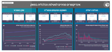 הדשבורד מציג נתונים עדכניים (יומיים וחודשיים) בשלושה תחומי פעילות כלכלית: