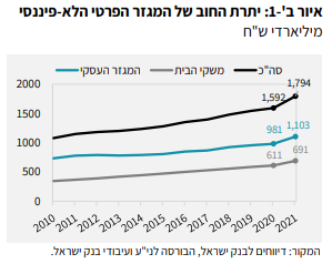 - גידול חריג באשראי הן למגזר העסקי והן למשקי הבית בשנה האחרונה מגביר הסיכון לאינפלציה.
