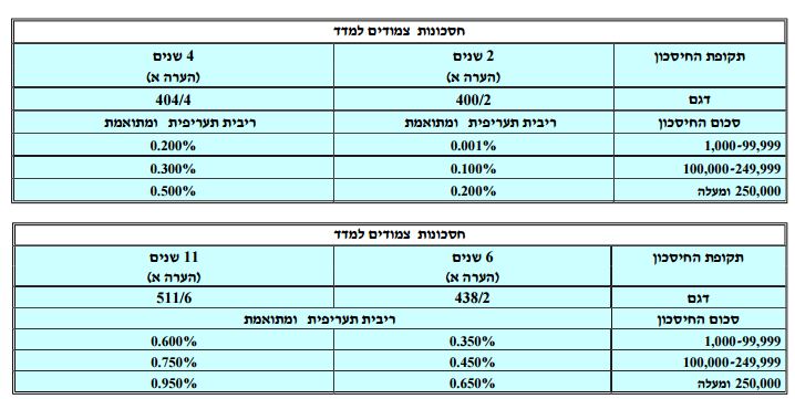 בנק לאומי מציע חסכון צמוד מדד לתקופות של שנתיים, 4 שנים, 6 שנים ו-11 שנה. הריבית קבועה. קרן החיסכון מובטחת.
