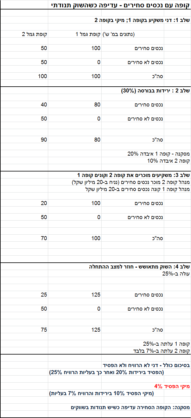 בשלב הזה, המשקיעים המתוחכמים, ולא צריך כאן תחכום מאוד גדול, יבינו שקופת גמל מוטה נכסים לא סחירים, היא "פצצת זמן"  והם יעברו לקופה הסחירה שכבר מגלמת מחיר נמוך. רבים יעשו זאת, במיוחד כשהמעבר כיום בין קופות ובין קרנות הוא פשוט ונוח.