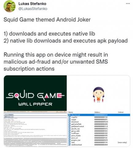 מומחה אבטחת המידע לוקאס סטפנקו, חוקר נוזקות בחברת אבטחת המידע ESET, חשף בחשבון הטוויטר שלו כי אפליקציה ידועה בשם "Squid Wallpaper 4K HD" שהייתה זמינה בחנות האפליקציות של גוגל (לאחר הדיווח כבר ירדה מהאוויר), פותחה על ידי תוקפים, במטרה להדביק מכשירי אנדרואיד בתוכנה זדונית בשם Joker.