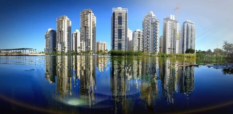 השכונה בנויה בעיקר מבניינים בני 9-23 קומות