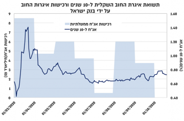 בנוסף, עד סוף ספטמבר רכש הבנק כ-34 מיליארד ₪ מתוך תוכנית של 50 מיליארד ₪, וסביר לצפות להרחבת תוכנית זו ולא מן הנמנע שהיא לא תוגבל, באופן שבו נוהג ה-FED, כלומר מעבר לרכישות לפי הצורך. בהיבט זה, לאורך החודשים האחרונים נרשמו מספר אפיזודות בהן עלה חשש להפחתת דירוג האשראי של ישראל שקיבלו ביטוי בלחץ לעליית תשואות בשוק האג"ח. הבנק הגיב לכך בהגברת מעורבות בשוק האג"ח, ומדיניות זו צפויה להימשך, כך שעוצמת עליית התשואות מוגבלת, והיא מייצרת לפרקים הזדמנויות טאקטיות להארכת מח"מ.