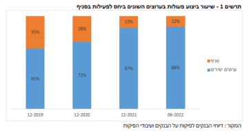 • החל משנת 2019 ועד המחצית הראשונה של 2022, קיימת עלייה בשיעור הפעולות המתבצעות בערוצים הישירים, כאשר הגידול בביצוע פעולות בערוצים ישירים בשנתיים האחרונות מתבצע בעיקר בהפקדת/משיכת פיקדונות ובנטילת אשראי.