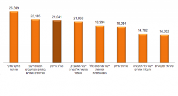 מנתוני הלשכה המרכזית לסטטיסטיקה שפורסמו היום עולה כי השכר הממוצע במשק למשרת שכיר ממשיך לעלות ולשבור שיאים כשהגיע ביוני ל-10,884 שקל. עוד עולה מה נתונים כי בחודש יוני 33.7% מהמשרות, כ-1.24 מיליון משרות, מכלל משרות השכיר במשק נמצאים בענפים שבהם השכר הממוצע למשרת שכיר גבוה מהשכר הממוצע.