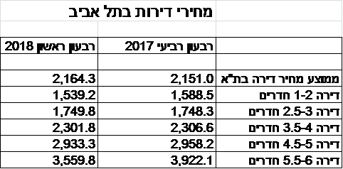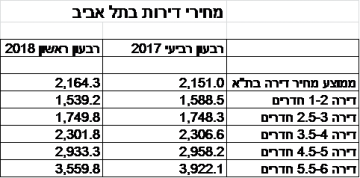 מחיר דירה ממוצעת של 5.5-6 חדרים בתל אביב ירד, על פי הלמ"ס, ברבעון הראשון של 2018 ל-3.56 מיליון שקל, ממחיר של 3.922 מיליון שקל ברבעון הקודם (רבעון אחרון של 2017). זה קשקוש, חבל אפילו לבזבז מילים. ברבעון השלישי המחיר של דירה כזו היה 4.32 מיליון שקל – עוד קשקוש, כן בטח , ירידה של 20% בחצי שנה. בקיצור, לא רציני, עדיף שמידע כזה לא יוצג.