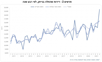 עוד עולה מהנתונים כי כרבע מהדירות שהחלה בנייתן היו בסבסוד ממשלתי, וכ-2,120 דירות, כ-3.3%, נבנו להשכרה.