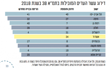 עוד עולה מהנתונים שפורסמו, פתח תקווה מדורגת ברשימת 10 הערים המובילות בהנפקת היתרי בנייה עד סוף 2018. בסך הכל ההיתרים שהונפקו בפתח תקווה במהלך 2018 מתייחסים אל 360 יחידות דיור ואל 12 מתחמים בביצוע.