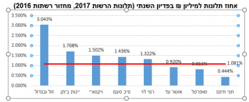 מתחת לממוצע ניתן למצוא את הרשתות אושר עד עם כ-0.9%, שופרסל עם 0.8% ואת חצי חינם עם כ-0.44%.