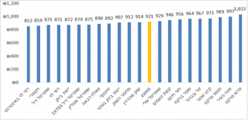 מחירי "סל המוצרים הבסיסי" בחודש אוגוסט בכל הרשתות שנבדקו: